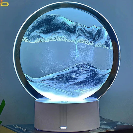 LED Quicksand Light Painted 6-Color Table Lamp 3D Trend Moving Art Circular Glass Hourglass Bedside Home Decoration Nightlight